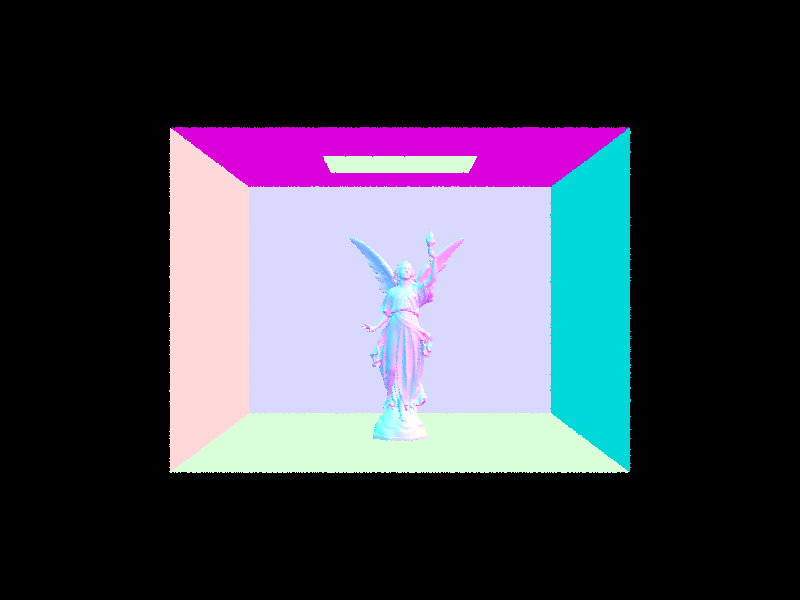 Issues that I ran into included making sure that I was taking the sampled radiance’s intersection emission, and not the input intersection’s emission twice. Additionally, I realized that I had a bug in my bounding box intersection, where my constraints were too tight and I was not considering rays that originate within the bounding box itself as an intersection (when they should be!). Lastly, the killer bug was realizing that C++ parses a < b < c as (a < b) < c, and is nowhere near equivalent to (a < b) and (b < c) which I had in my triangle intersection. After fixing that, everything ran perfectly. Amazing.